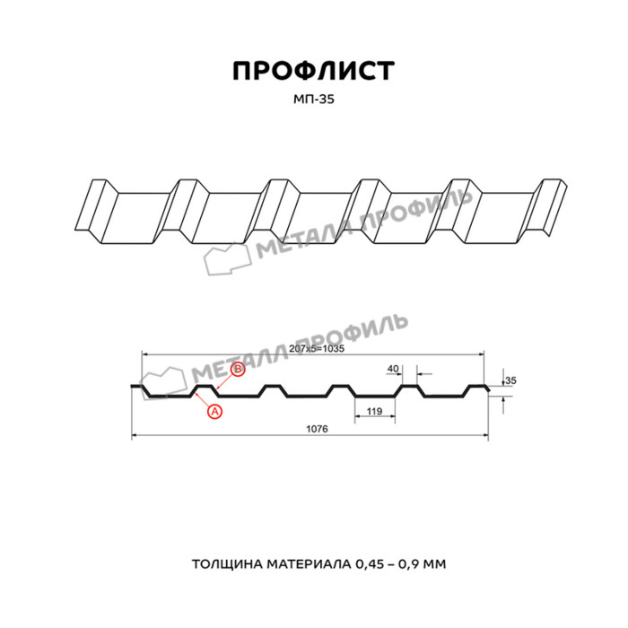 Профлист Металл Профиль МП-35 0,9 Цинк Бесцветный