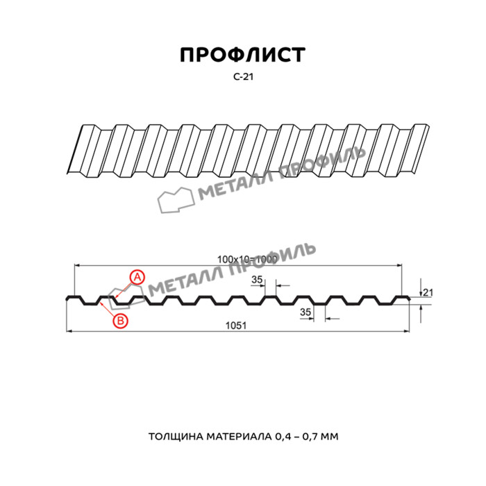 Профлист Металл-Профиль С-21 Полиэстер 0.45 мм RAL 9006 Белый алюминий